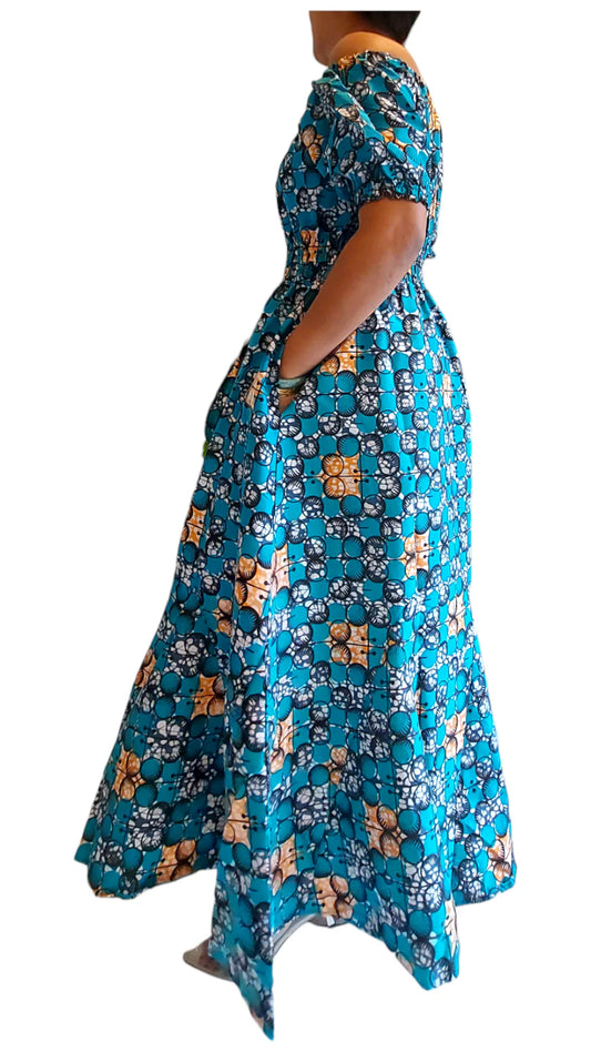 Flounce Dress/Shoulder Straps /African Anarka Print