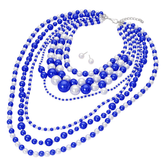 Chunky Pearl Beaded Multi Layered Statement Necklace