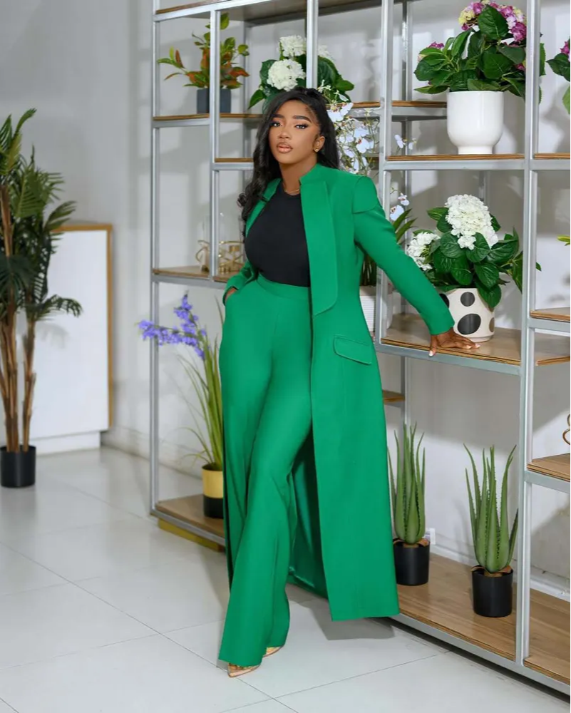 2025 Two Piece Fashion X Long Blazer Coat and Long Pants Spring Business Suits.