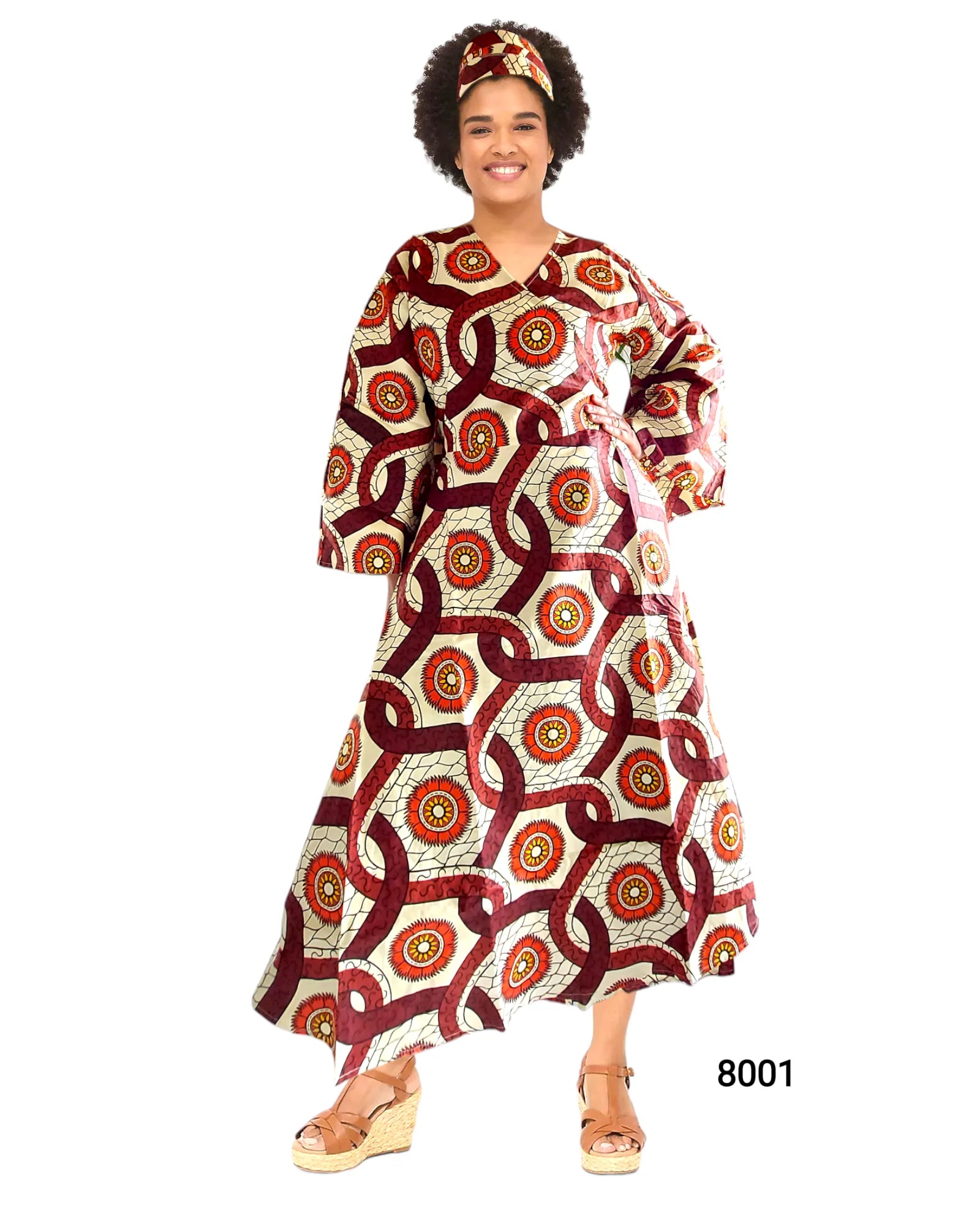 Graceful, versatile, and effortlessly chic—the 8001 Wrap Dress With Bell Sleeves is a timeless addition to your wardrobe. Expertly crafted from 100% African cotton, this authentic long wrap dress offers breathable comfort while delivering elevated style.