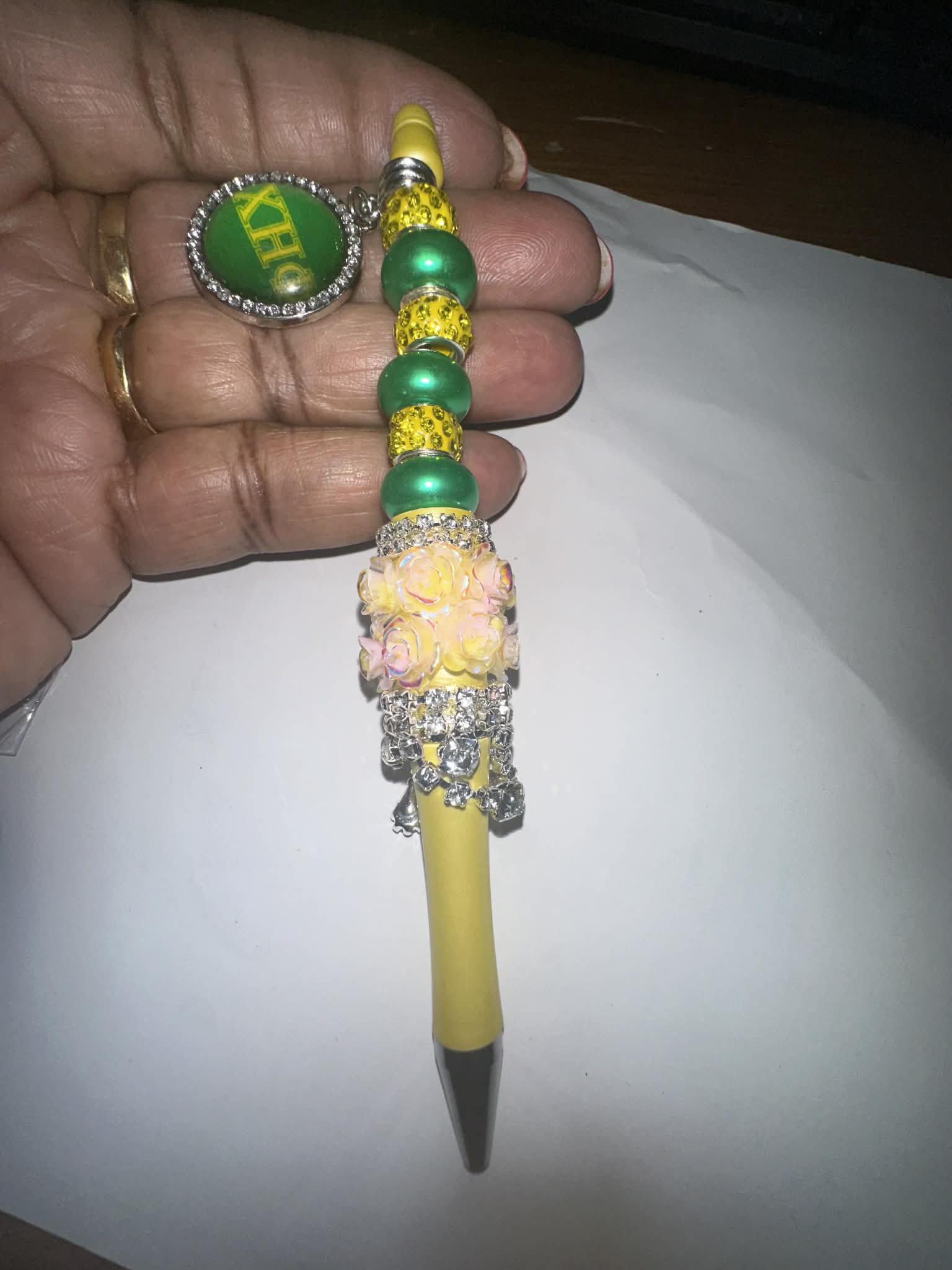 Chi Eta Phi Fancy Flower Stones 14.5 Length Ball Pen with Bead Ships same Day.