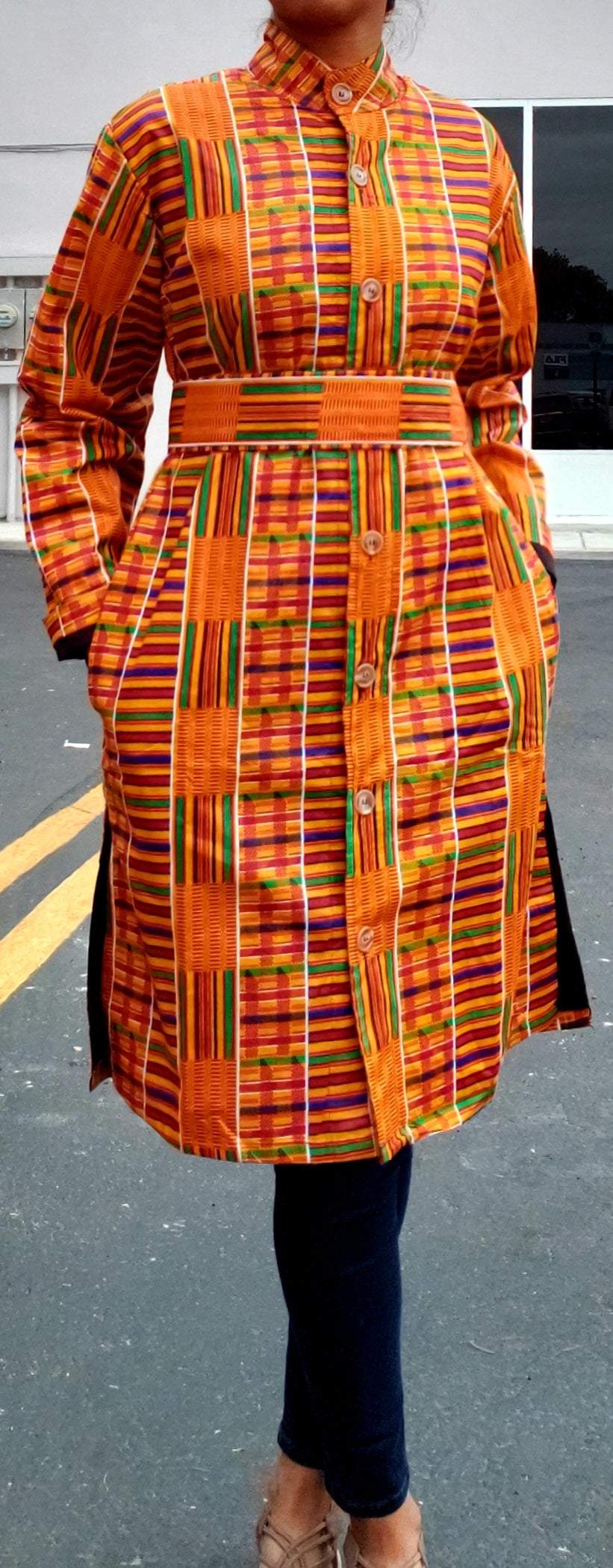 Unisex kente print coat/ dress/jacket.