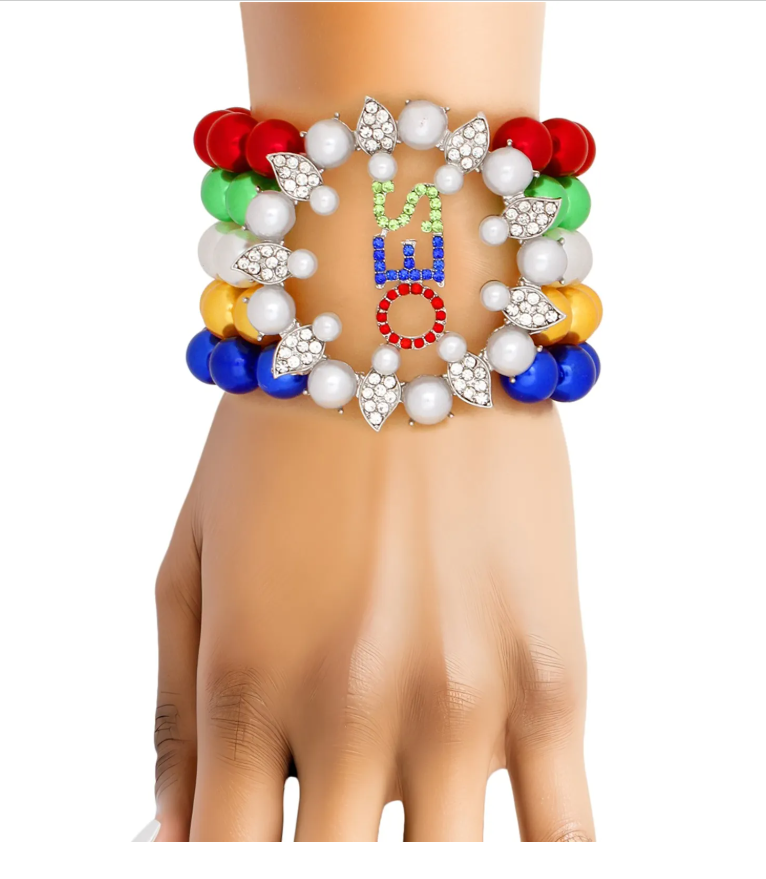 This bracelet is an ideal choice for sorority events, social gatherings, or simply when you want to bring a touch of elegance and pride to your day. Designed for the sophisticated woman who embraces her heritage and loves a splash of color, the OES Multi-Pearl 5-Strand Bracelet is your go-to piece for unforgettable style and meaningful expression.