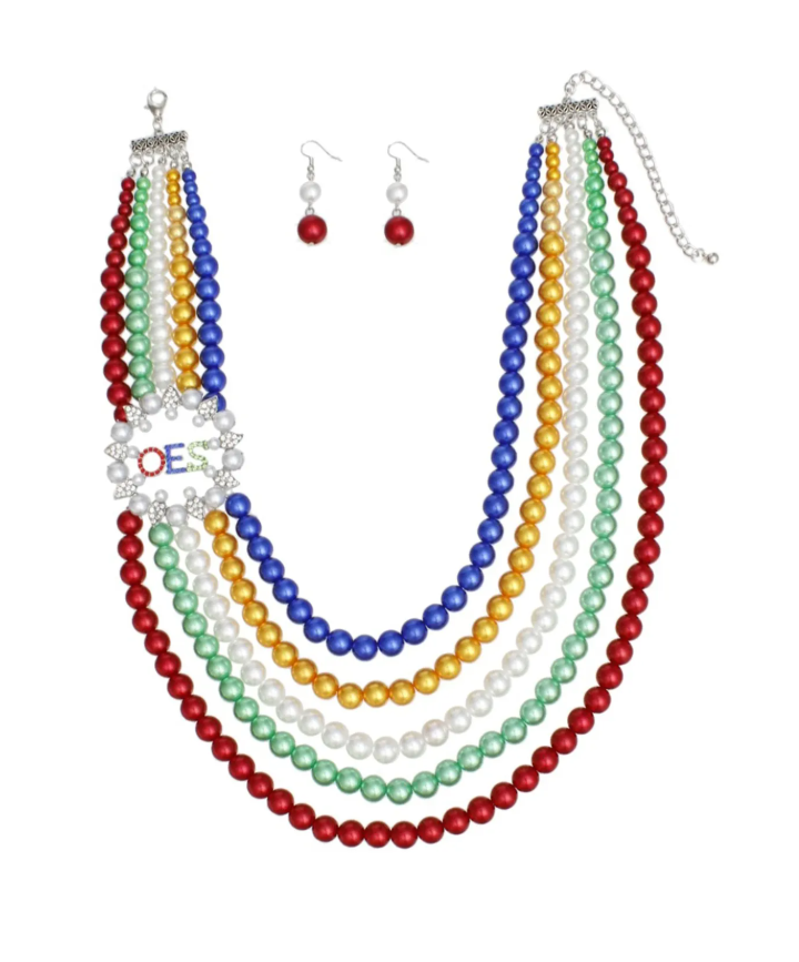 This necklace set's multicolor pearls and stunning details make it versatile yet boldly unique. It's an ideal choice for sorority events, formal occasions, or as a striking piece for upscale gatherings. Pair it with your favorite attire for an elevated look that celebrates OES sisterhood with grace and grandeur.