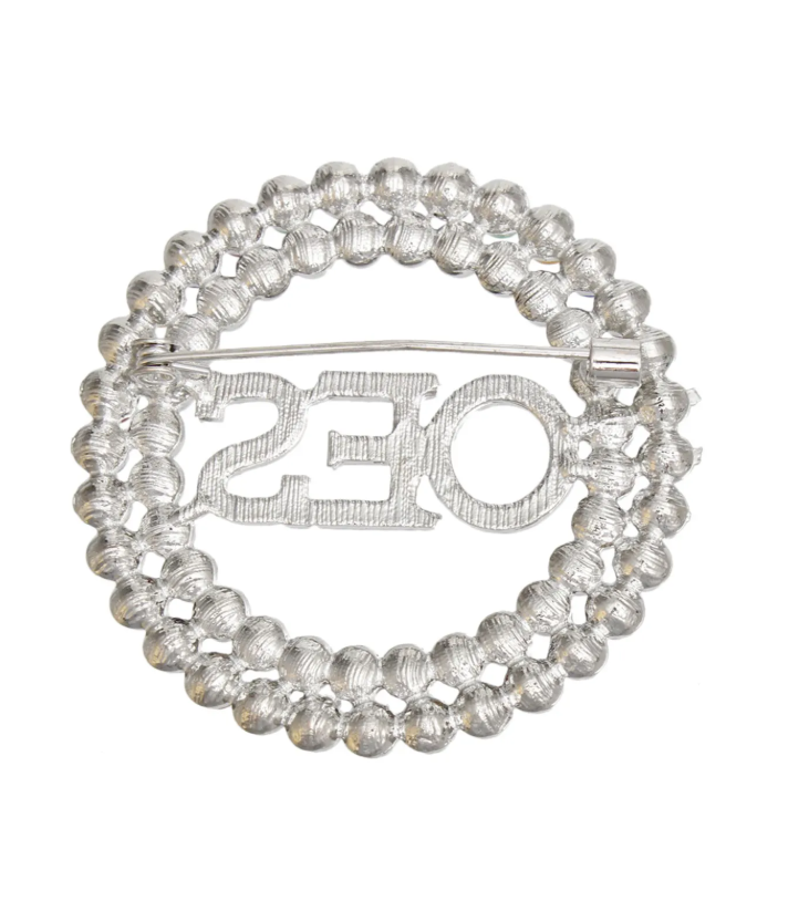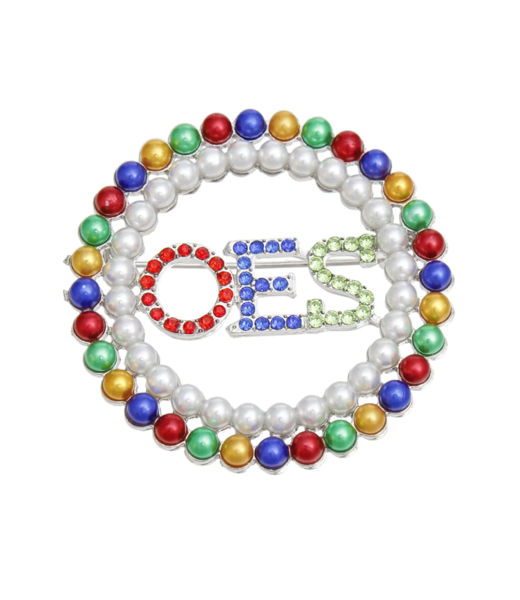 Get ready to shine brighter than the stars with this OES Sorority Round Multicolor Pearl Brooch Pin! Designed to reflect the regal elegance of the Order of the Eastern Star, this brooch is all about making a statement. The classic round silver metal design is layered with rows of white and multicolor pearls, radiating sophistication from every angle. Topped off with the OES rhinestone emblem, this pin will have you looking both bold and beautiful, no matter where you wear it.