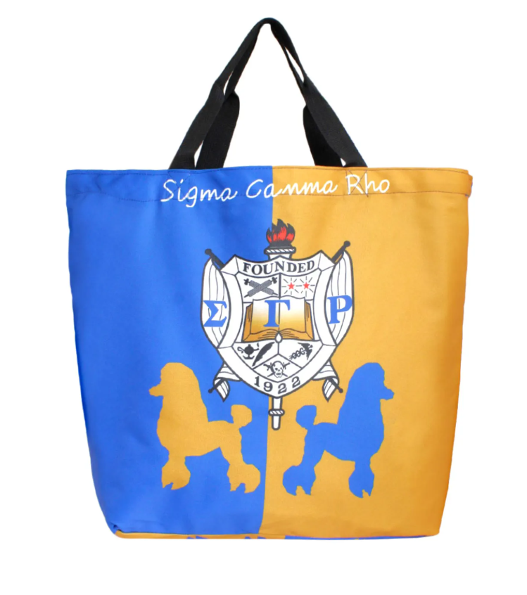 | Tags | Women's, Shopper Tote, Tote Bag, Large, Canvas, Sigma Gamma Rho/Gold and Blue |