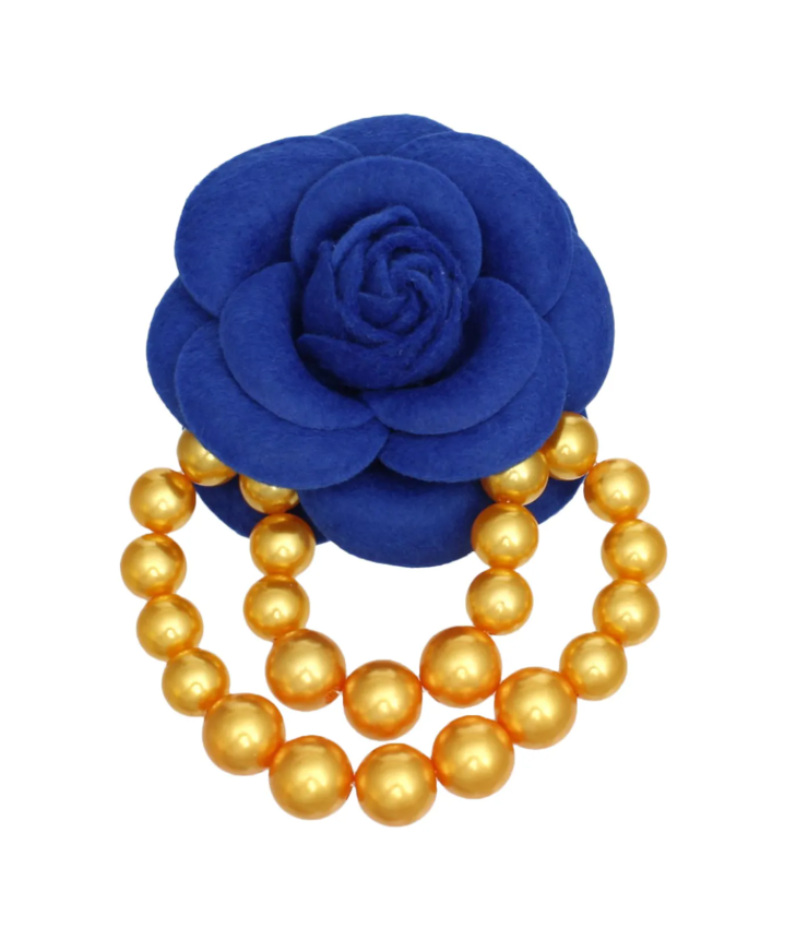 Get ready to turn heads and drop jaws with our SGRHO Sorority Blue Flower Draped Pearls Brooch. This isn't just a brooch; it's a statement. Designed for the woman who knows that style is all about making a splash, this brooch is your perfect sidekick. Featuring a stunning blue 3D wool felt flower with layered petals and draped in graduated acrylic gold pearls, it's the ultimate blend of sophistication and sass. Elevate your sorority pride with a touch of elegance that only this brooch can deliver.