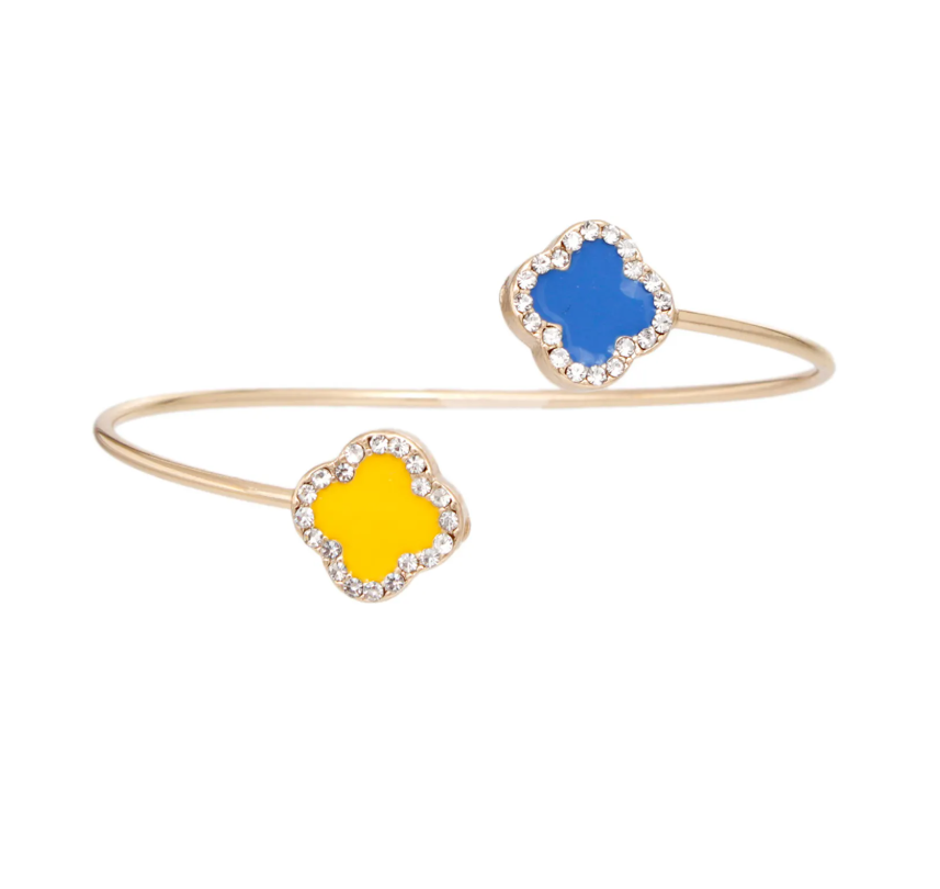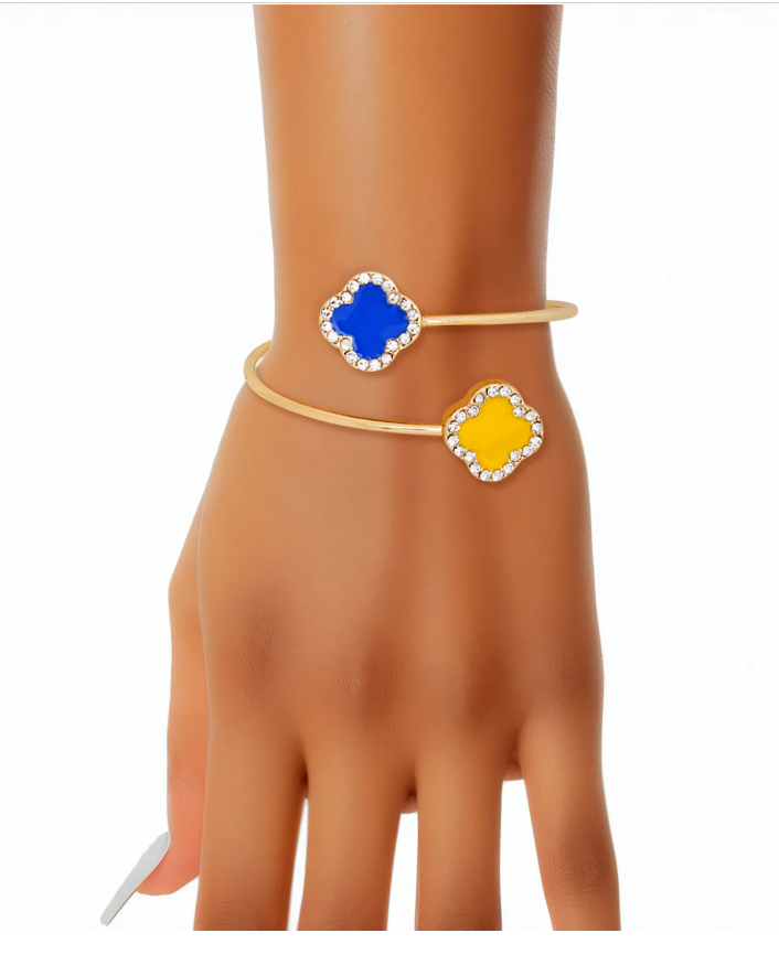 SGRHO Sorority Blue Gold Stone Clover Open Bangle