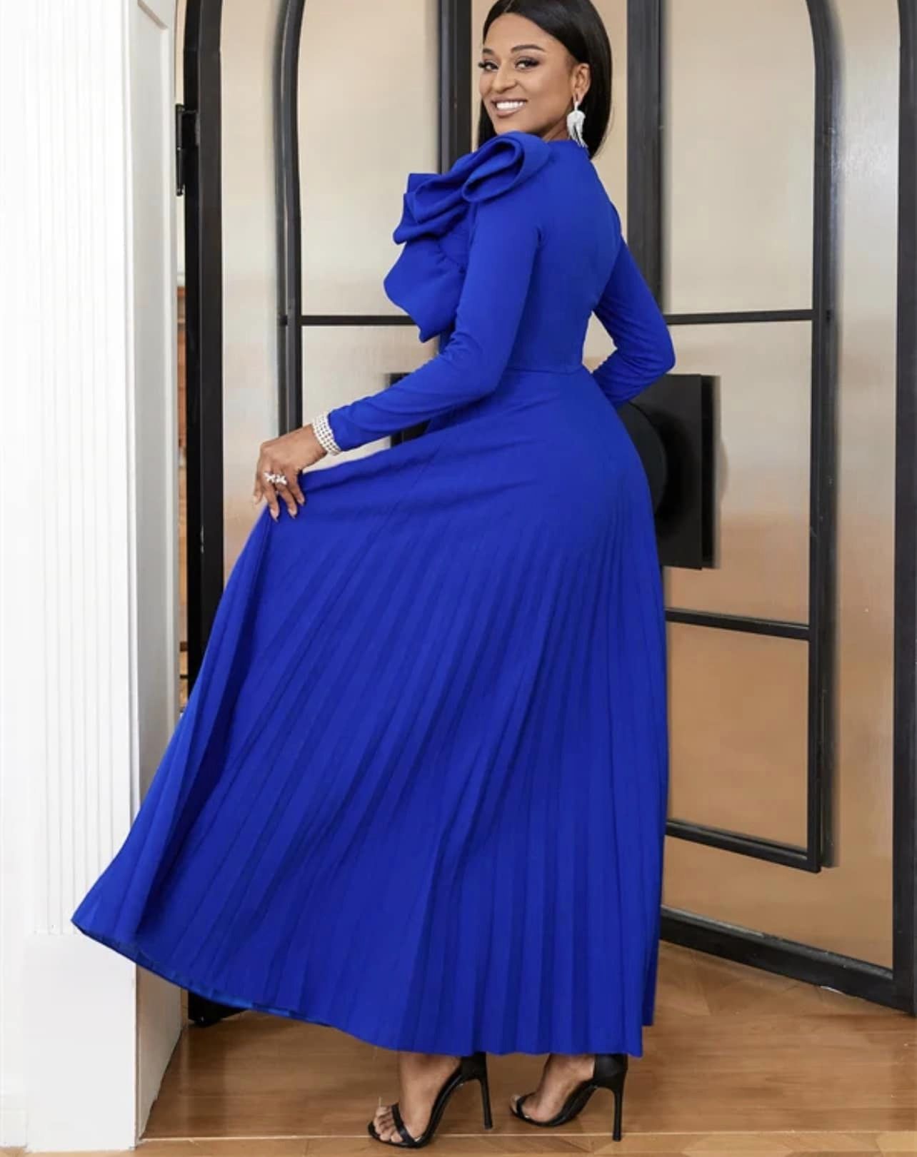 2024 Latest Design Long Sleeve 3D Decoration Elegant Plus Size Pleated Evening Dress Party Dresses Women Long Gown Evening Dress. Polyester Spandex. High Quality Material. Ships in 7 to 10 business days or less. This is high quality. Please pay attention to the size chart.